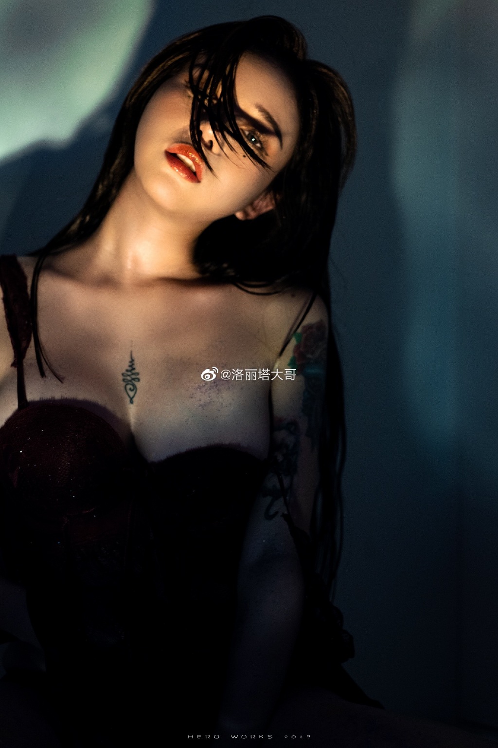 「洛麗塔大哥」近日為迎接新的一年,向粉絲大方放送福利,只見她在微博中貼出三張火辣美照,照片中的她畫著煙燻深色妝容,身上穿著低胸黑色蕾絲上衣,火辣秀出香肩鎖骨以及「快要溢出來」的北半球,左手臂的玫瑰刺青和胸前深溝上的奇特刺青圖案也一覽無疑,她還在昏暗搖曳的光影之中對著鏡頭露出迷濛表情,火辣尺度相當引人遐想。