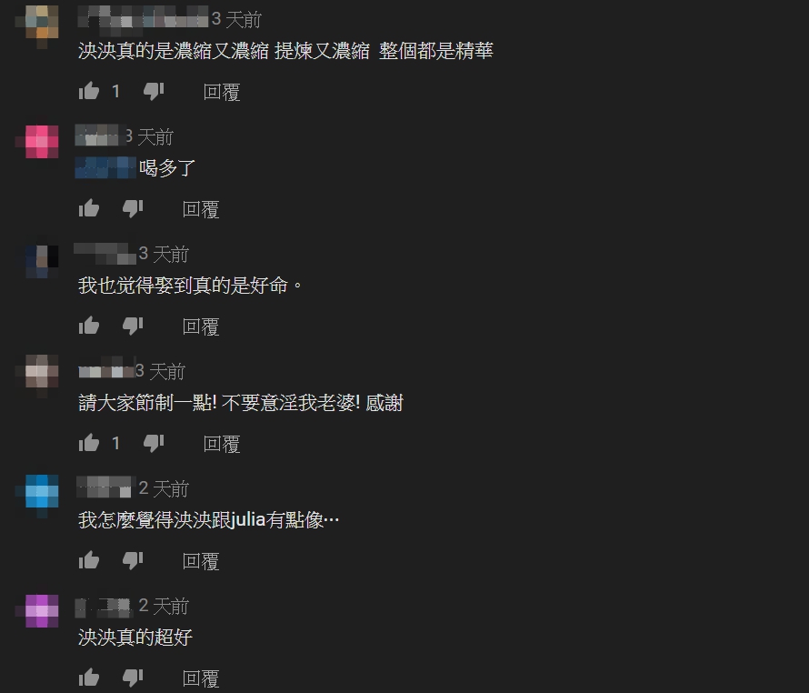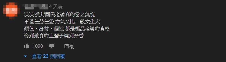 泱泱的俐落身手、大方又貼心的舉動受到網友大讚,紛紛表示「泱泱太讓人激賞了這女孩兒!」、「泱泱真的有夠可愛,快瘦不鳥呢」、「泱泱根本全能女神了」、「可以感受到泱泱一直在進步」、「泱泱真的是濃縮又濃縮,提煉又濃縮,整個都是精華」、「泱泱,受封國民老婆真的當之無愧,不僅任勞任怨,力氣又比一般女生大,顏值、身材、個性,都是極品老婆的資格,娶到她真的上輩子燒到好香。」,不過也有網友搞笑吐槽「(娶她)口袋也要夠深,畢竟泱的食量也是驚人」。