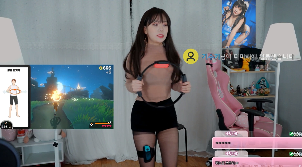 網路無遠弗屆,透過各種社群媒體平台網友可以與來自世界各地的朋友交流、分享生活,在這樣的風氣下,許多分享遊戲實況的直播主出現,尤其是外型亮眼的美女更是廣受網友喜愛。近來,一位韓國Cosplay Model「Kim Dami」在Twitch平台上分享玩「Switch健身環」的過程,比起遊戲內容,更多網友注意到影片中,她姣好的身材,以及雄偉的前峰,大飽粉絲眼福,令網友直呼:「晃著晃著我都暈了」