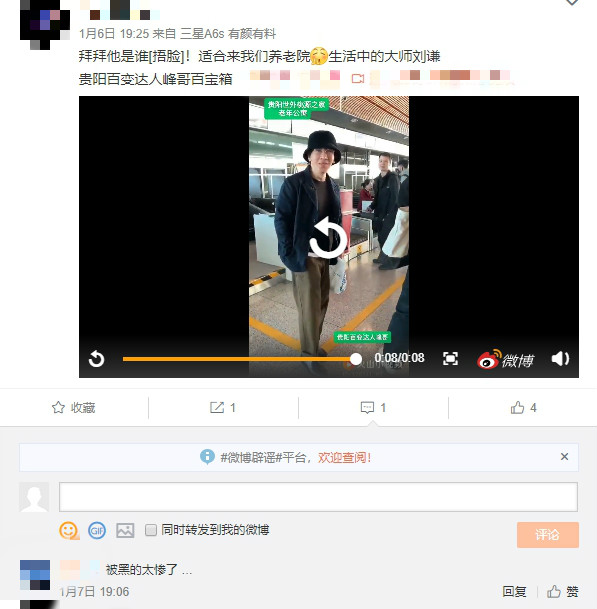 後來這位網友還直接去問他,「新年好,今年還會上春晚嗎?」結果劉謙保守地說,「可能不會了~」後來他又問起錄影的人是什麼單位,還沒聽到回答影片便倉促結束。網友把影片PO上微博後,也在發文中寫道,「他是誰!適合來我們養老院生活的大師劉謙」,影片一出,馬上引起外界熱烈的關注與討論,不少網友看完都紛紛留言表示,「被黑的太慘了…...」。