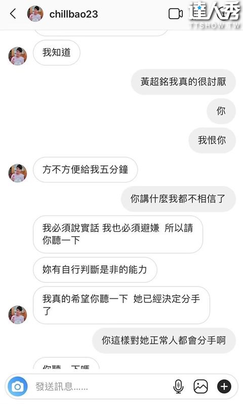 另外爆料者也提供前女友和黃包包的「微信對話」,其中可以看到黃包包表示會將對話刪掉、Wechat刪掉,「檯面上,我們不認識,沒聊過天,沒有任何聯繫方式」,隨後女生便再也無法傳送訊息。