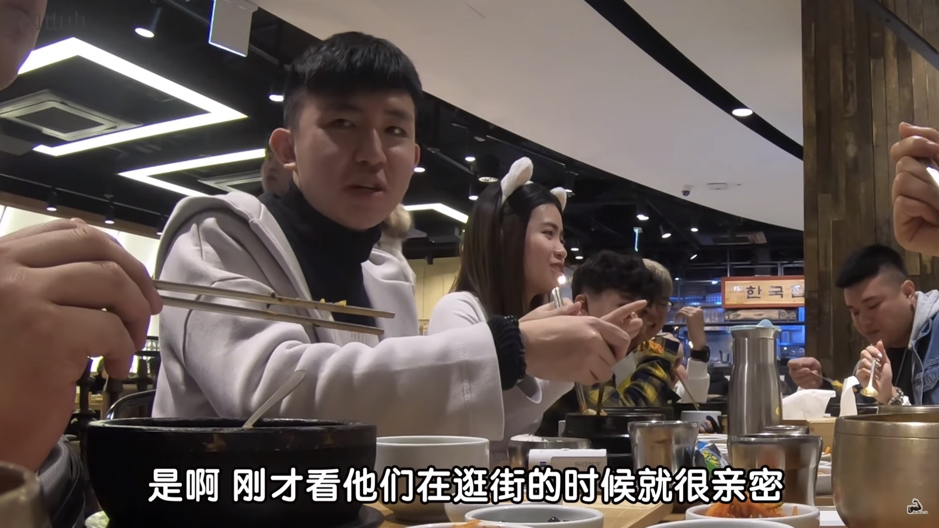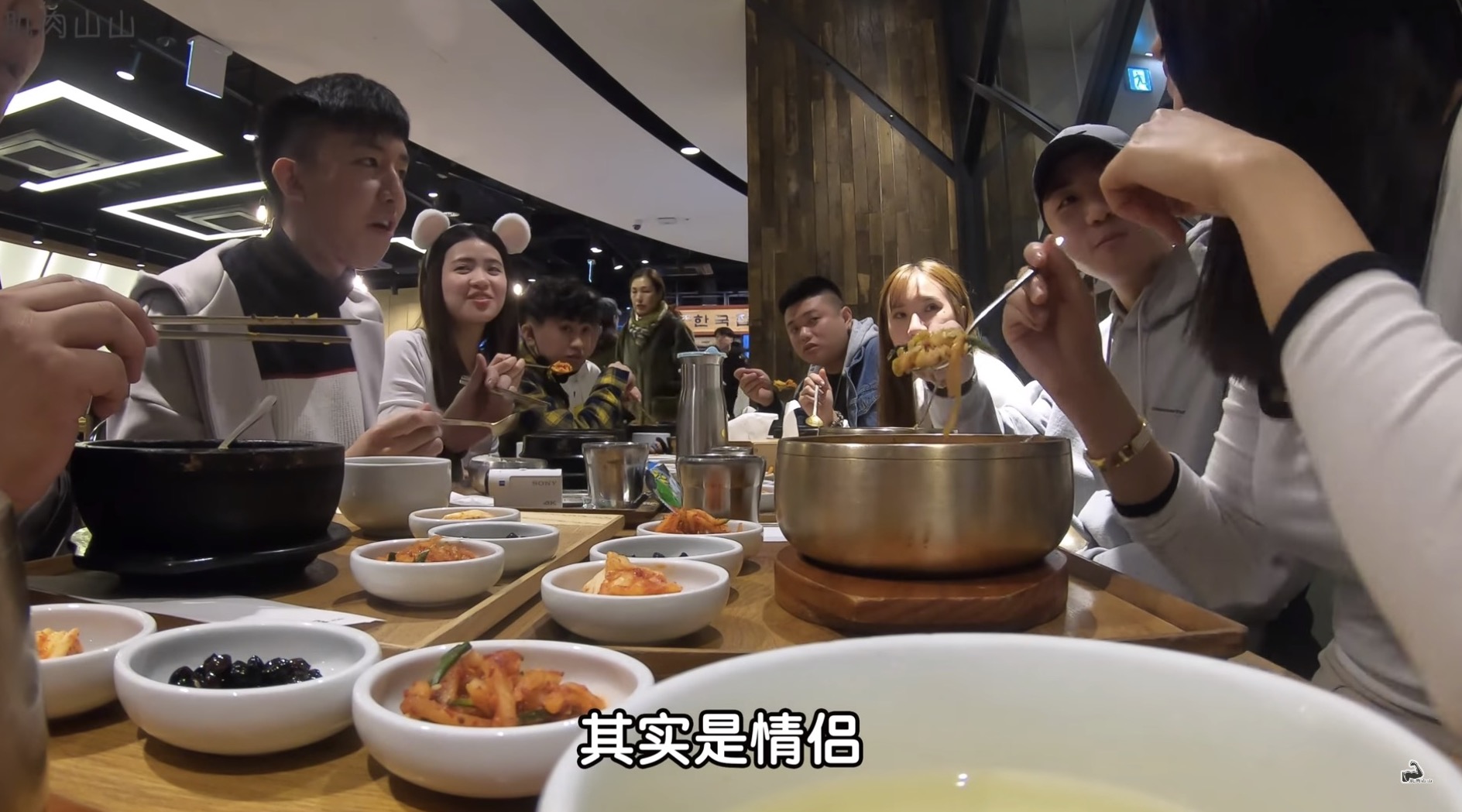 一路上松松和山山也做了許多情侶的舉動,像是:十指交扣、摟肩、擁抱、摟腰等互動都讓其他人看得一頭霧水,一行人逛完之後也找了一家韓式料理的餐廳準備用餐,在吃飯的過程中就有一位朋友問了兩人「你們是真的情侶嗎?」、「你們什麼時候公開」,而松松就表示現在即將向他們公開兩人真實的關係,為了更加逼真甚至還請攝影師以及所有人都暫停拍攝,說到:「我們對外是(姐弟),其實是情侶」,讓一旁的7位朋友看傻眼,表情相當震驚。
