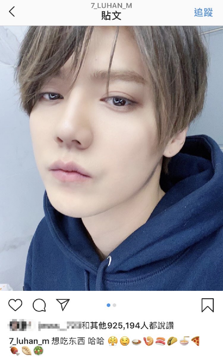從鹿晗的照片中可以看到,他對著鏡頭放電自拍,完全看不出來他居然已經是一個30幾歲的人~照樣可以頂著童顏嘟嘴自拍賣萌,讓無數粉絲們看了都心動不已,而他也在更新了兩張自拍照之後,搭配了簡短的文字,語氣淘氣的說,「想吃東西~哈哈!」後面還加了披薩、壽司、拉麵...等美食符號,似乎是想吃宵夜但又不能吃,只好憤而發文來發洩~。