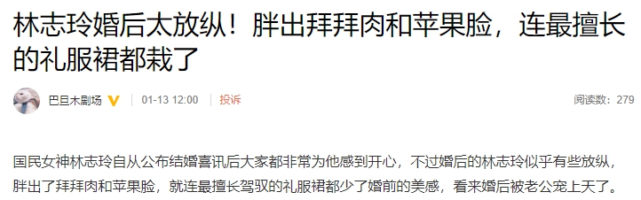 從網路上的影片中可以看到,林志玲穿著非常貼身的金色亮片洋裝,大方地展露曼妙的性感曲線,不管怎麼看都能讓人感受到她的火辣,不過衣服可能是真的太緊,讓志玲姊姊的腋下竟然炸出了副乳,整坨肉肉就這樣原形畢露,從胸部與手臂之間被擠了出來!讓網友們看到都紛紛直接在微博上表示,「林志玲婚後太放縱…看來婚後被老公寵上天了!」還有不少人看完現場照片之後,紛紛表示,「林志玲不只胖了手臂,昔日的尖瓜子臉也不見」、「看來結婚後很是放縱,沒有進行好身材管理!」。