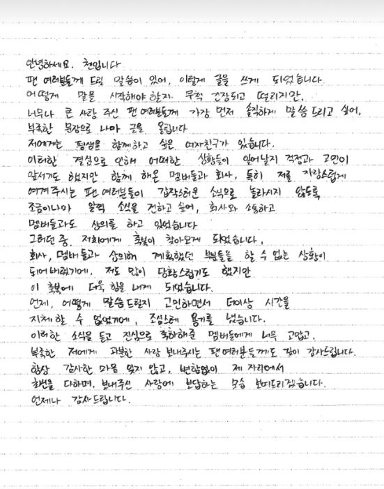 EXO 첸 결혼발표 자필 편지 https://t.co/hBLTOgNLJC pic.twitter.com/6LW9lEsHi7