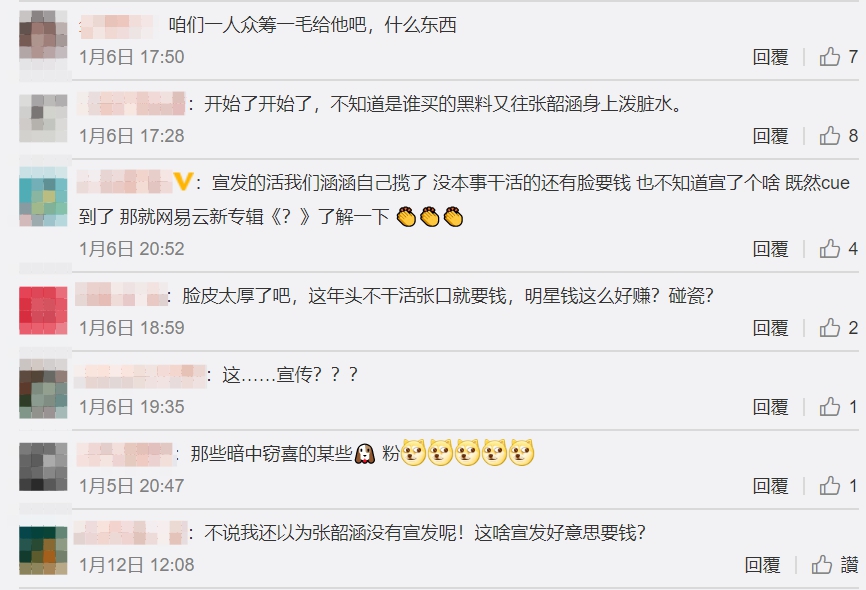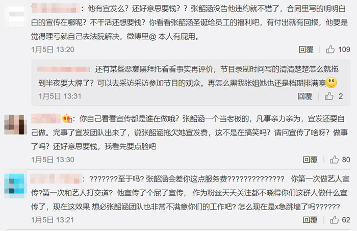 根據《鏡週刊》報導,這篇討債的貼文發了將近十天的時間,張韶涵本人跟她的團隊完全沒有做出回應,在網路上更新的內容都是在宣傳自己的新專輯,對這個討債文章視而不見!不過張韶涵的粉絲卻對這篇貼文感到很火大,瘋狂卯起來痛批對方,「臉皮厚!」覺得明明就是這家宣傳公司辦事不力,大部分的宣傳都是張韶涵跟團隊自己親力親為,「宣傳服務除了轉發她自己寫的微博,還有做什麼?」網友們皆認為,這個宣傳團隊「不配要錢!」。