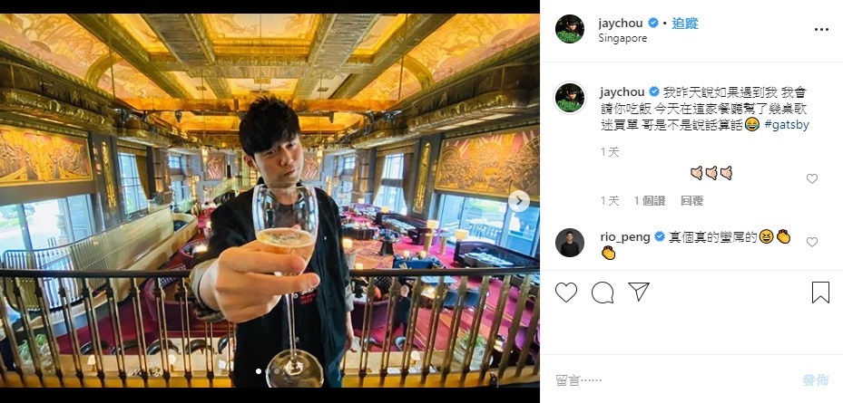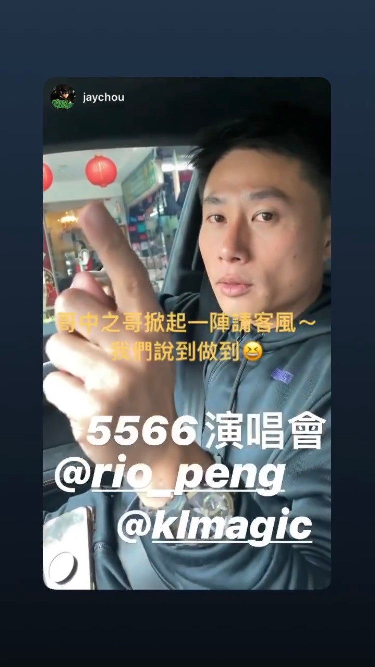 周杰倫最近在新加坡的演唱會結束之後,開心的在社群平台上發文寫道,「謝謝新加坡的朋友,明天如果在餐廳遇到我,記得讓我買單!」沒想到竟然真的有粉絲幸運的遇到了周董,爽爽吃了一頓幸福的「免錢飯」~不料在13日,周杰倫的IG限時動態中,又PO了幾則貼文,內容是周董要前5566天團的成員小刀請客!