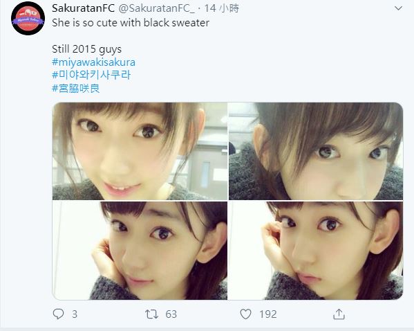 宮脇咲良原本是作為日本女團AKB48體系下「HKT48」的成員,因為在韓國活動了一段時間的關係,她完美消化了韓系妝容,卻又不失日本女生的可愛感,受到許多男粉絲喜愛。14日時,宮脇咲良的粉絲後援會PO出一系列小櫻花在2015年時,所拍攝的照片,清純的模樣讓網友都十分吃驚。