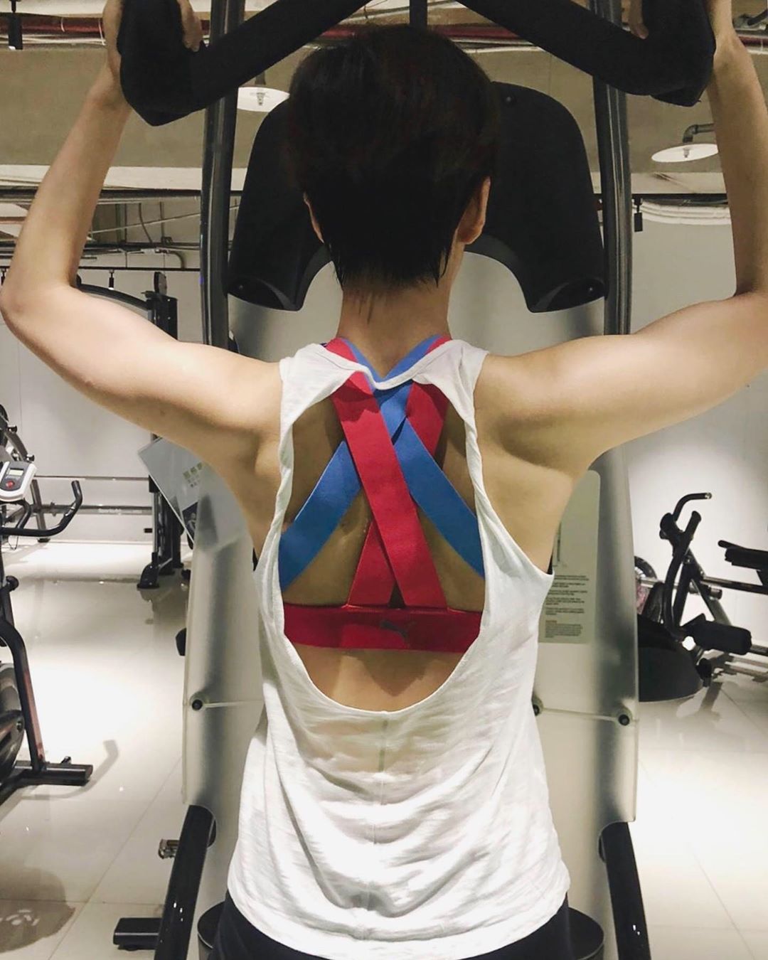 其中,還有一張照片是她背對鏡頭,舉高雙手抓著健身器材,用力操肌肉的模樣讓她的手臂線條變得超級明顯,而且她結實的背部,完全看不到任何贅肉,搭配一頭俐落短髮,不知道的人,從背影看還可能誤以為她是男生呢!