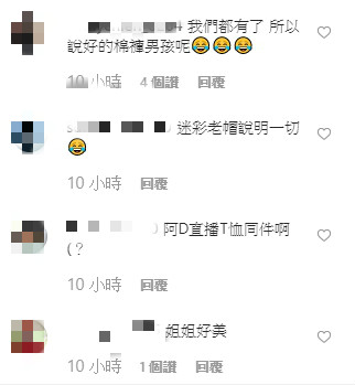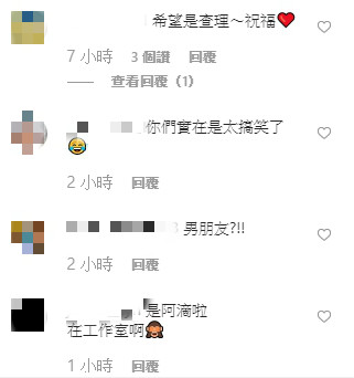 滴妹的發文剛上傳立刻引發網友熱議,大家議論紛紛合照中不能露臉的神祕男子到底是誰,一半網友表示:「是阿滴啦,在工作室啊」、「看衣服是哥哥啦……」、「看來是無眼鏡skin的阿滴呢」、「阿D直播T恤同件啊」,另一半的網友則猜測是她的緋聞對象「迷彩帽……猜是當兵的查理」、「希望是查理~祝福」,也有網友開玩笑地說:「就是滴姐啦~」