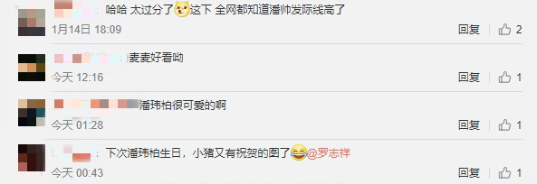 影片片段被網友輾轉分想,有網友對次表示:「下次潘瑋柏生日,小豬又有祝賀的圖了」、「完了偶像包袱碎了一地」、「潘瑋柏很可愛的啊」、「陳奕迅二代」、「哈哈太過分了,這下全網都知道潘帥髮際線高了」,同時也有網友稱讚「美女還是美女」、「吳亦凡可可愛愛」