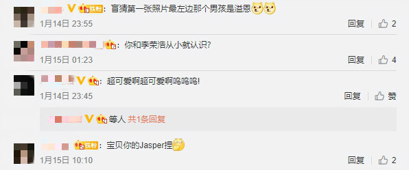 網友們看見她的發文紛紛湧入留言表示:「真可愛」、「下次發發我們沒見過的」、「想要回到過去 想要早點認識你」、「超可愛阿超可愛!」、「快點睡覺」。更因為隔壁的小男孩眼睛的部分有些神似李榮浩,甚至有網友搞笑歪樓表示:「你和李榮浩從小就認識?」,相當爆笑。