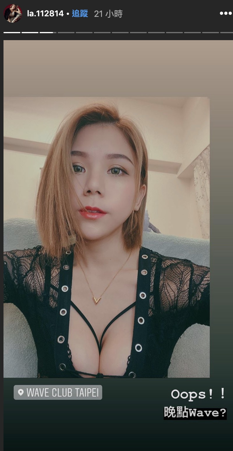 日前,「反骨男孩」部分成員受邀至台北「WAVE Club」擔任嘉賓,其中也蕾菈被邀請到夜店站台,在出席活動前,蕾菈在IG限時動態上分享一張半身照片,是張超火辣的性感夜店裝照片,照片中可以看見她身穿一件鏤空設計的黑色上衣,胸前的領口開到超低,在金色項鍊的搭配下顯得她的肌膚更加雪白,她傲人的前鋒與超深事業線一覽無遺,秀出大好身材的同時打卡「WAVE CLUB TAIPE」,訊問粉絲們「晚點WAVE?」,掀起一陣轟動。