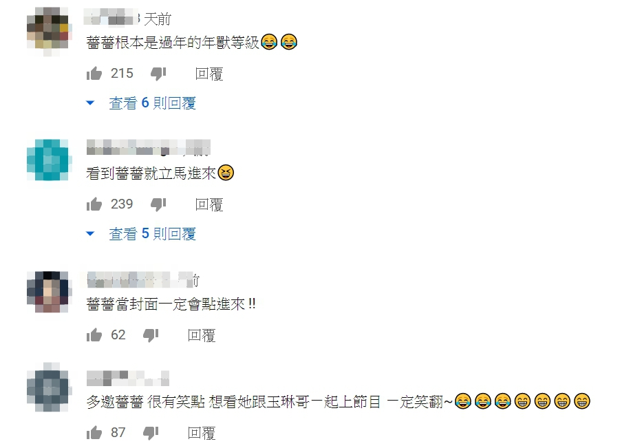 雖然薔薔的奇招確實是誇張的讓人哭笑不得,但也因她直爽的作風,讓她在節目上特別有笑點,也特別有效果,獲得了不少觀眾緣,被瘋狂稱讚說,「薔薔根本是過年的年獸等級!」、「看到薔薔就立馬進來了」、「薔薔當封面一定會點進來看」、「多邀薔薔!很有笑點~想看她跟玉琳哥一起上節目,一定笑翻!!!」、「有薔薔先給讚!」。