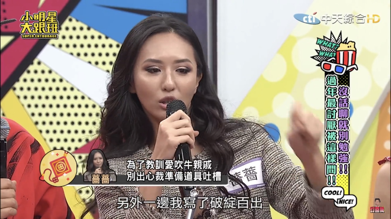 過年時大家通常都會和家人親戚聚在一起吃團圓飯和敘舊,而這一次《小明星大跟班》也以過年相關的主題,邀請了不少藝人來大聊特聊,特別是個性本來就嗆辣、有話直說的薔薔,更是在節目中出了「奇招」,讓想要愛吹年的親戚們「徹底閉嘴」,節目播出後,也讓許多網友表示:「薔薔開口都是精彩!」