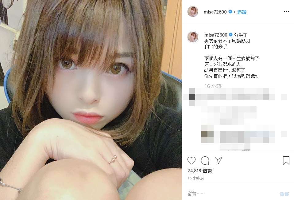 大尺度網紅「米砂Misa」原先是一名Coser,之後轉戰開設YouTube頻道並以超辛辣的大尺度兩性話題聞名,更被粉絲們稱為「老濕姬」,在去年11月時米砂捲入墮胎風波,與孫安佐以及阿乃更數次在社群平台上互相攻擊,在當時引起相當大的風波。然而事件落幕後米砂也突然公開宣布自己去整形,更爆出有個交往小段時間的男友,豈料米砂在公開認愛的1個月後戀情就告吹,近日米砂的新戀情再度曝光,引發熱議。(想看更多:「最爛YouTuber」排名曝光!「米砂、孫安佐」殺進榜單)