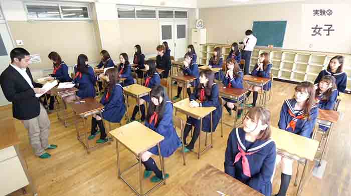 最後公布成績時發現,Hajime社長在四次考試中,表現得最好的成績是「獨自應考」,獲得70分高分成績,接下來排名第二的竟是與清涼「比基尼女郎」的考試,獲得69分的高分,僅差最好的成績一分,至於全是女同學的環境下他只獲得64,全是男同學的部分更低,只有62分。結果讓網友們大吃一驚,更有網友直呼:「實際上,全班女同學都穿泳衣也不會有多好看嘛!」(想看更多?南韓直播主「舞姿太笨」!「小可愛+熱褲」肢障跳舞…「胸前波濤」頻頻掉出來!)