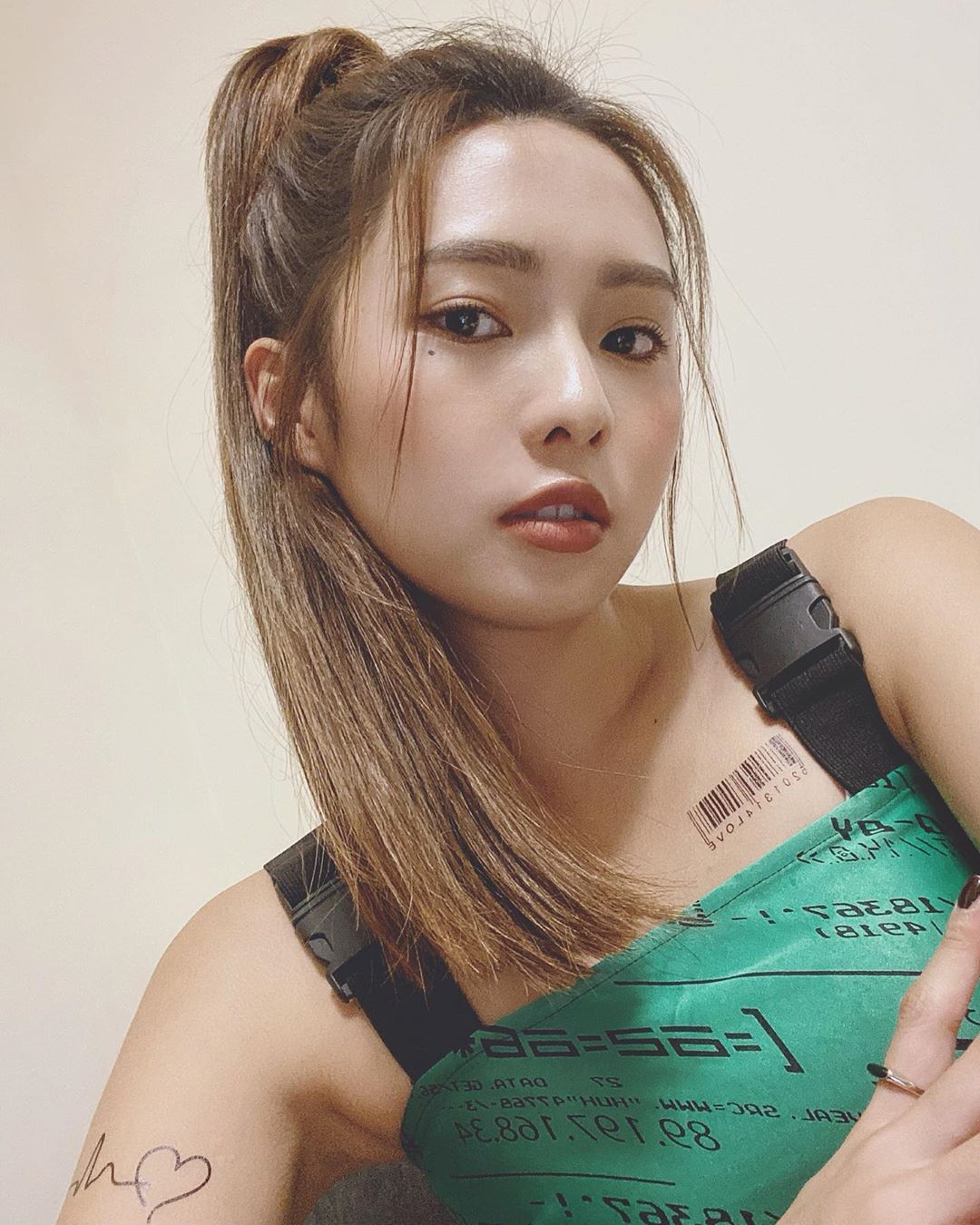 而簡廷芮最近也在IG上貼出自己遊泰的日常,分享當地美食的照片,並發文寫道,「抵達後~又累又餓的第一餐!」,照片中可以看見她穿著一件貼身的黑色T恤,長髮全都往後撥,可以清出看見她衣服的領口超低,胸前超深的事業線整個可以說是一覽無遺,大秀雪乳北半球與深溝,黑色上衣更顯現她的皮膚很雪白,讓網友們眼睛大吃冰淇淋。