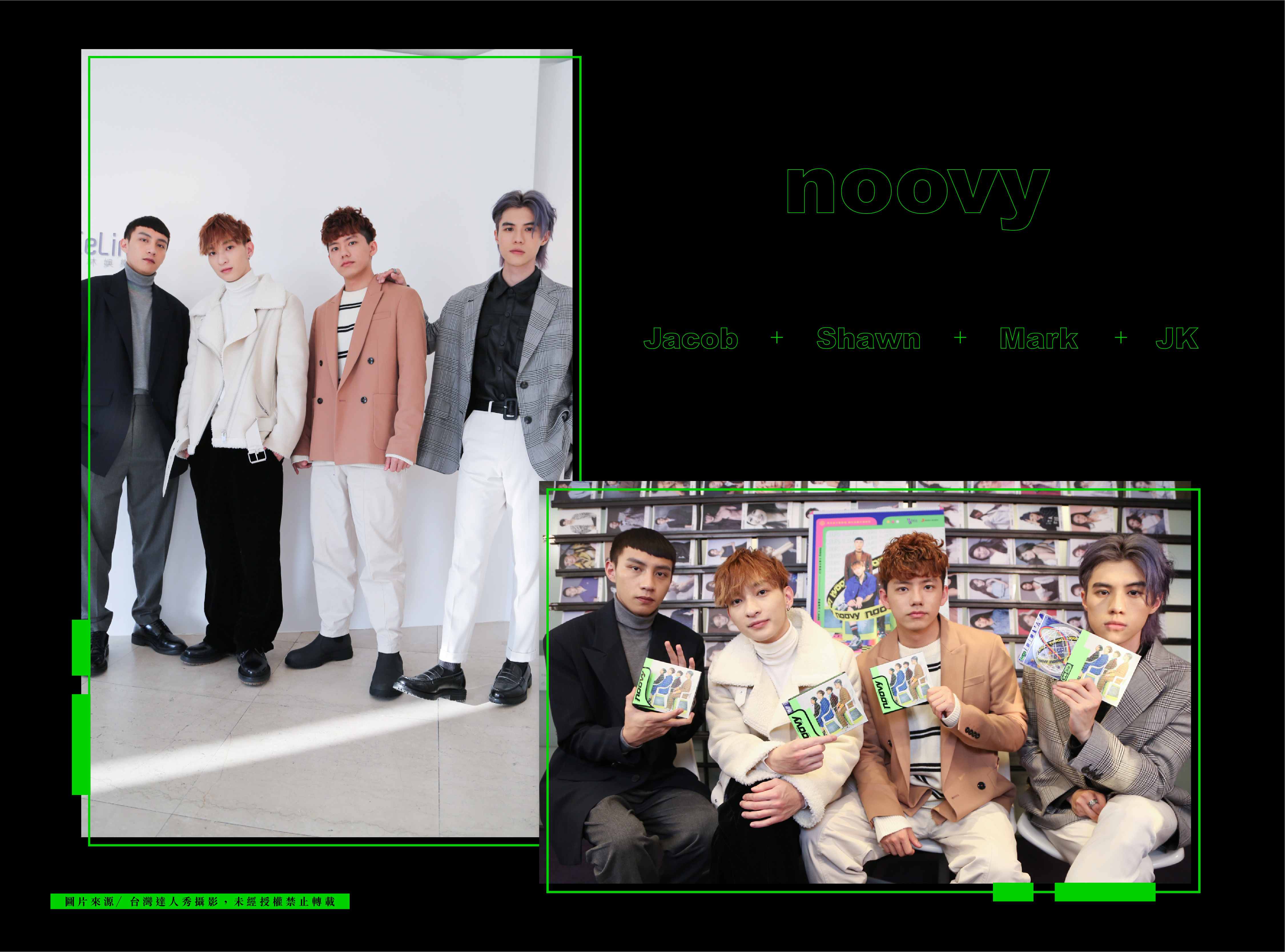 noovy四位團員們平均起來年齡僅22歲,但他們已經在日本和台灣完成了許多場的演出,四個人臉上都帶著稚氣但同時兼具帥氣,談吐之間充滿冷梗和熱情,就是這麼反差的模樣才讓人印象深刻。在專訪的過程中充滿了冷笑話與滿滿的梗,活潑樂觀就是他們的最大特質,在如此艱辛的演藝道路上,noovy不論碰到什麼都甘之如飴。