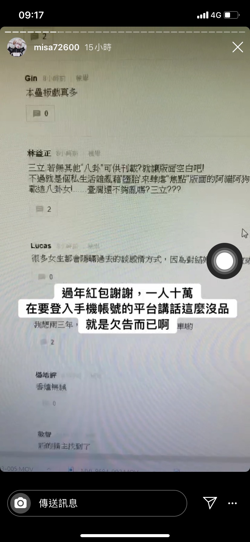 「米砂」分手不到一月交新歡遭批「香爐」!IG截圖開告「提早領紅包」:一人十萬謝謝