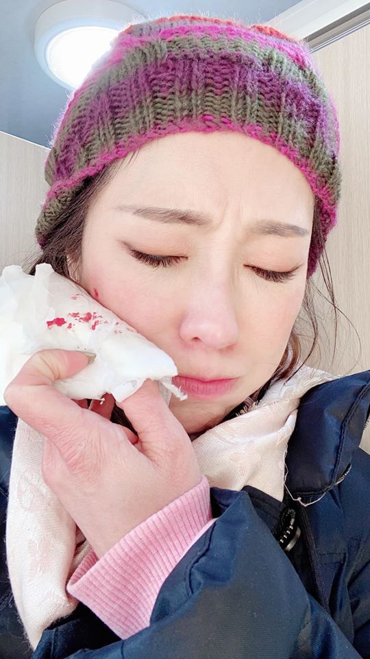 當時她因為沒有做好防滑,一不小心在冰上滑了一跤,造成她的臉部濺血,讓她當下緊張得趕緊就醫,就深怕這一摔,會在臉上留下深深的疤痕,還在發文中笑自己是「完美示範樂極生悲的女子」!不過好在當地護理人員非常的細心,看到她臉上的傷口之後,非常擔心的跟她說,「你的臉不能留疤!」讓叮嚀KIMIKO要去買除疤藥膏,讓人感到超溫馨!
