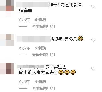 奎丁照片一出,引來不少粉絲按讚,同時也有人紛紛留言表示,「哇塞!這張母湯會噴鼻血」、「這件穿出去,路上的人會大量失血」、「這必須有人保護,我去」、「這樣單穿出門太危險了」、「會掉出來吧」、「雅典娜女帝穿這樣會引起暴動啊!」、「這樣出門是要逼死誰」、「妳肯定前世是個吸血鬼,用這張圖讓男性失血」。