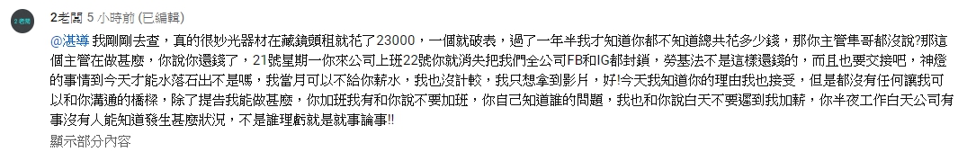 另外針對「黑道恐嚇」一事,老闆則表示,若有此事歡迎訴諸法律,別將莫須有的罪名壓在他身上,且這些事情他認為根本回應不完,從古拉說歧視、比熊說霸凌直到現在說恐嚇,事情一直解釋不完,認為大家覺得有疑慮的話,就走法律途經,交由司法來判斷。