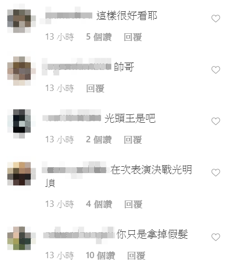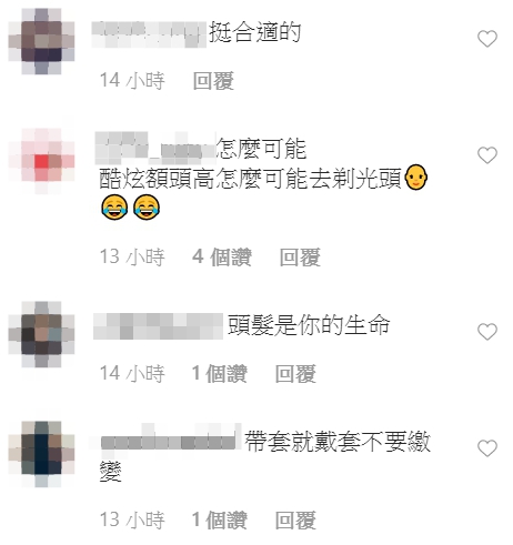 酷炫的新造型受到網友熱議,許多網友都給出超高好評,紛紛表示「這樣很好看耶」、「真的話,蠻好看的。」、「太帥了啦」、「挺合適的」,不過也有網友直呼「你只是拿掉假髮」、「拜託不要」、「原來通過失戀也能成為英雄」、「光頭王是你嗎」、「看起來不像騙人」。