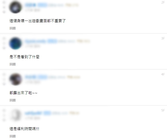 不過baby66走光畫面,仍被剪成實況精華上傳,並被分享至論壇「遊戲大亂鬪」,立刻引來不少人留言,「這健身環一出遊戲畫面都不重要了」、「都露出來了啦~~」、「這是福利時間嗎!!!」、「這動作我不行了」。