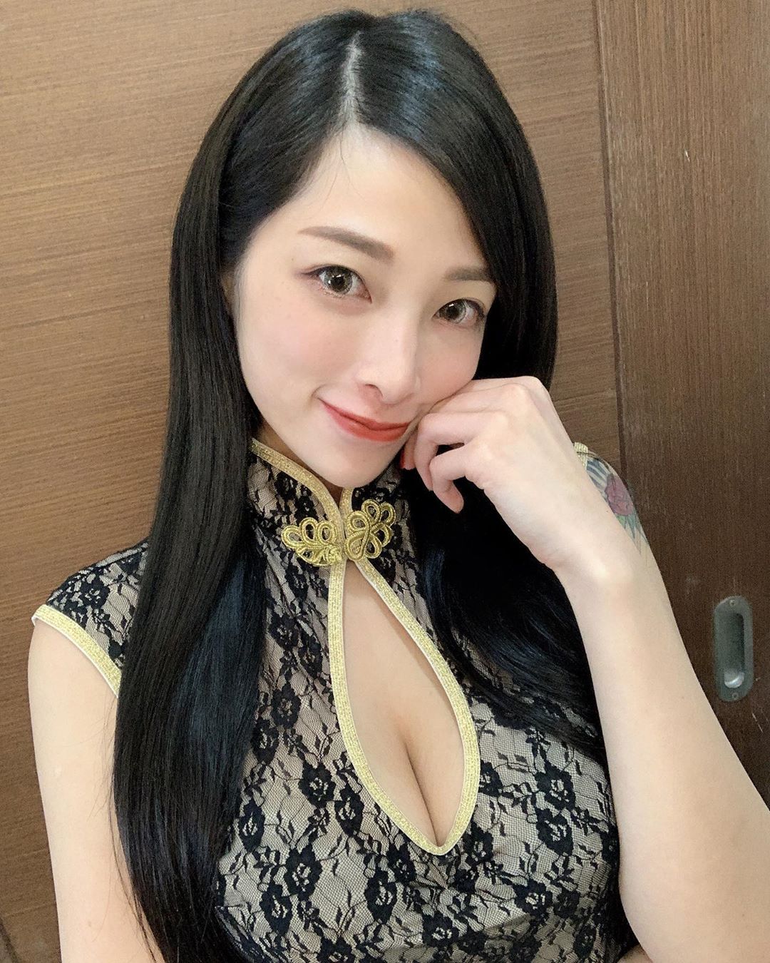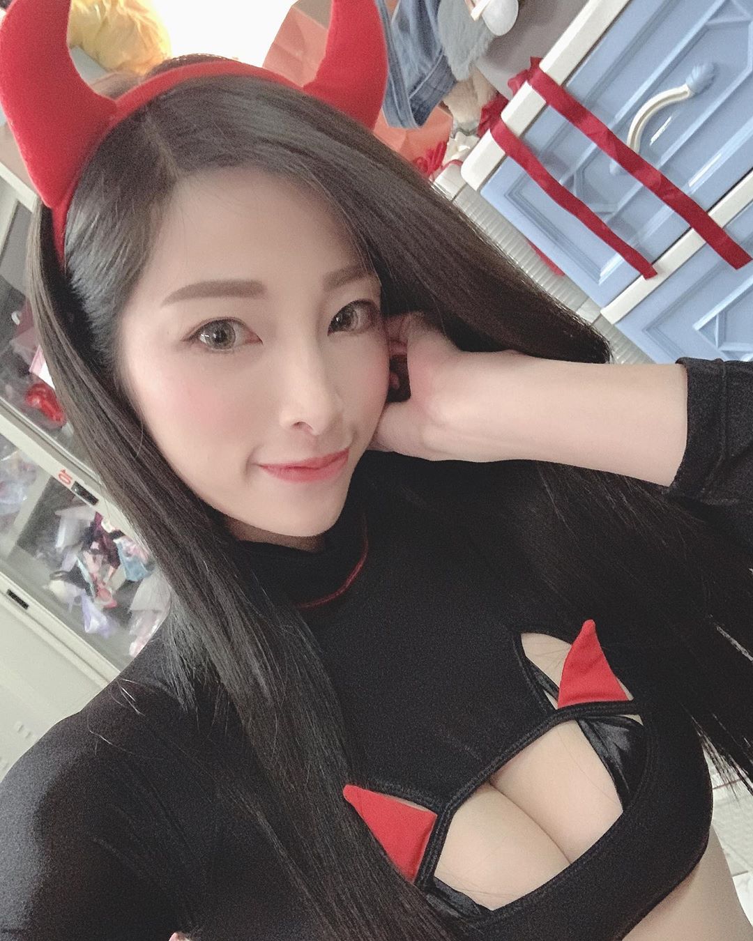其中最廣受好評的,是她身穿性感黑色蕾絲的衣服,而且最引人注目的是,她這件衣服從胸口一路大敞開到肚臍,讓她的「雙球」都露出了一半在外面,而她也寫道,「頭大身體小」,引起了網友們熱烈的反應,大家都紛紛留言表示,「身材比例完美」、「誘人的身材」、「綺麗」、「流鼻血啦」、「真的頭很大身體很小耶XD」、「Omg...缺伴嗎?」。