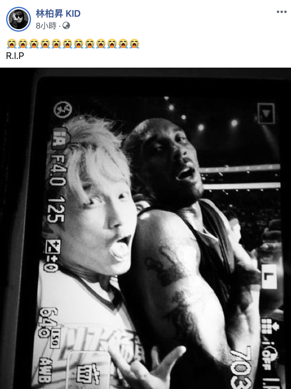而藝人KID也在社群平台發文哀悼追憶,曬出他跟Kobe的合照,從照片中可以看到他們兩個一起做調皮的表情合照,讓人感受到Kobe的親和力,可惜如今再也沒有機會看見他這一面,而KID也連用了好多個痛哭的表情貼圖,來表達自己內心滿滿的傷痛!此外,藝人潘瑋柏也在社群平台發文寫下「R.I.P」以表示對Kobe離去的消息感到哀痛。