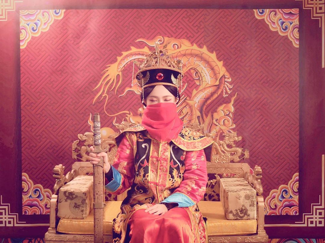 關關在農曆春節時,於IG上傳一系列「清宮照」拜年,同時也提醒網友,因目前武漢肺炎疫情不穩定,記得戴上口罩!只見照片中,關關穿著一身清朝服飾,貴氣逼人,用一把扇子微微遮住臉龐,但仍擋不住氣勢,一雙電眼就迷死大票網友!除了扇子以外,關關也使用絲巾等遮臉,配上一把刀,讓她不禁自嘲「莫名就變刺客了」!