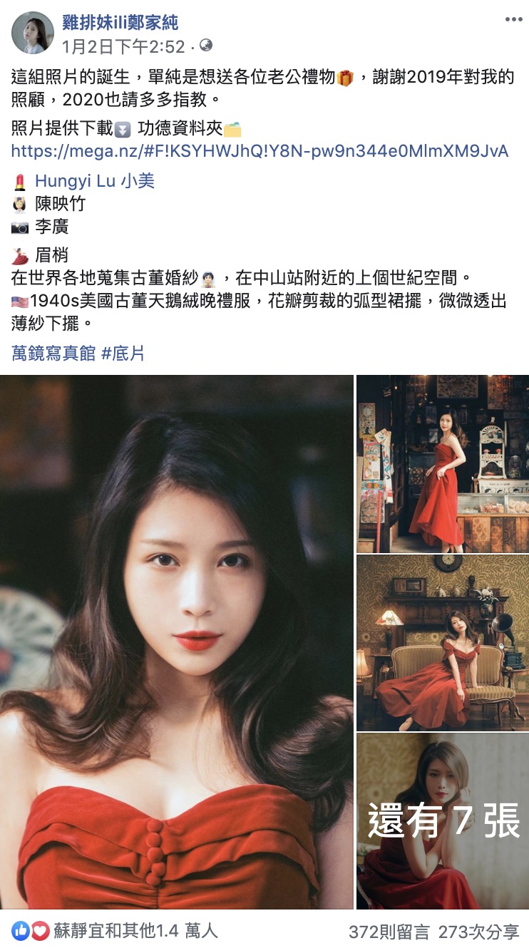 在今年年初時,雞排妹也曾放送滿滿的福利,當時她開了一個名為「功德資料夾」提供大家下載她的美照,資料夾中從2017年到2019年的大尺度照通通都有收錄,答謝粉絲一直以來對她的照顧。