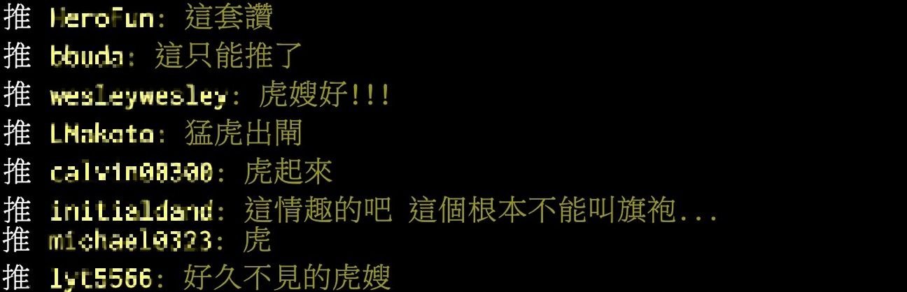 1999年由台大的學生們創立的論壇「PTT」至今成為全台灣人都愛用的論壇,在PTT上更有眾多不同類別的看板,其中「表特版」每一天都會有許多鄉民貼出正妹的照片或者是偶像的美照。然而在2017年時,表特版上有一名網友張貼一組大陸網紅「程彤顏」穿著皮卡丘背心的美照,在留言區中就有一位鄉民「Tiger」的留言過於暴露而被版主水桶,此後這名大陸網紅就被鄉民譽為「虎嫂」,也瞬間在PTT表特版中爆紅。近日,虎嫂的照片又登上表特版,換上戰袍的虎嫂也令鄉民們大飽眼福。