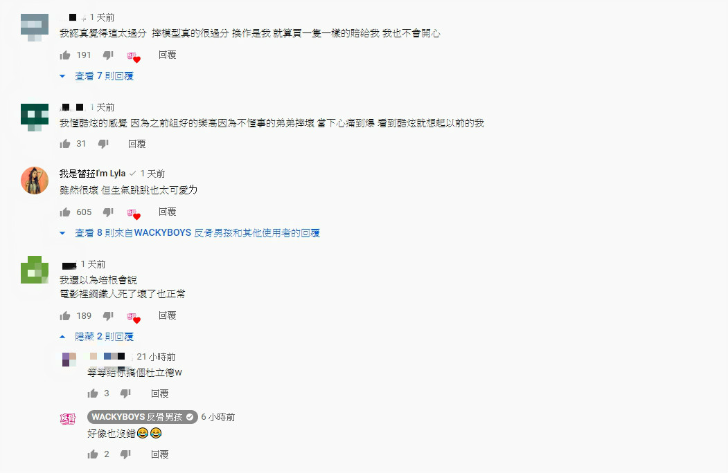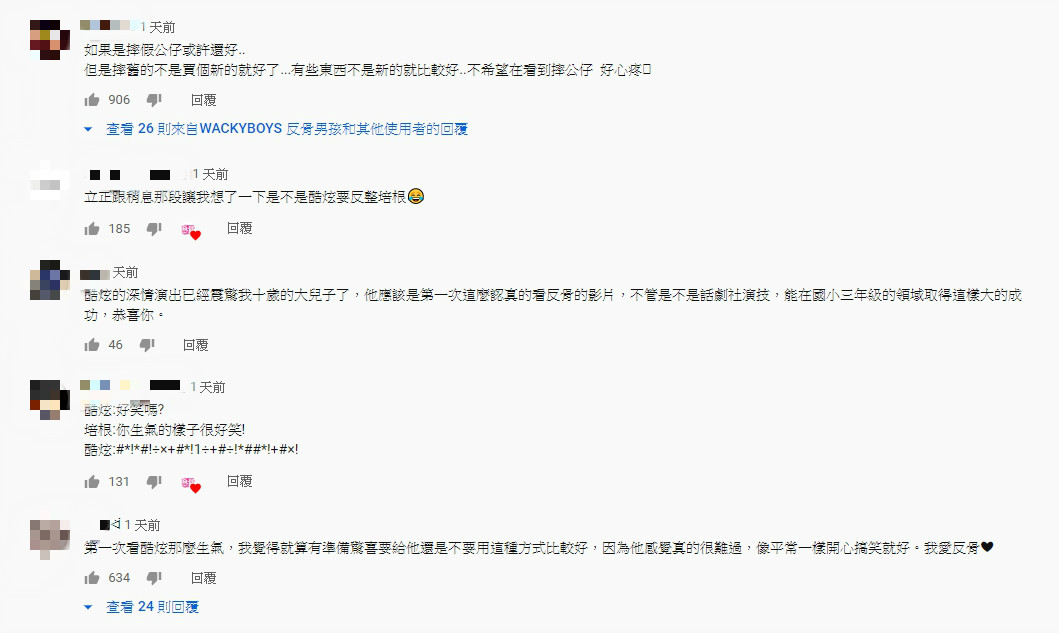 影片上傳後,直衝發燒排行榜,引起網友熱烈討論,有網友表示「有些東西不是新的就比較好」、「第一次看到酷炫那麼生氣……感覺他真的很難過」、「我認真覺得這太過分」,也有另一派網友表示一切都是效果不用認真,「酷炫的深情演出已經震驚我十歲的大兒子了」,對此反骨男孩也親現身表示「後來大家都有意識到在拍片,娛樂效果勿認真,我們有把公仔復原完畢」。