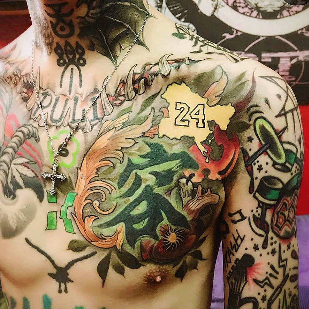更瘋狂的是,他還在身上刺了代表柯比布萊恩(Kobe Bryant)的8號跟24號,在他的胸膛和手臂上,並且開心地曬出他跟莉婭的合照,還有最近他陪莉婭去錄音室錄音的照片,可以得知莉婭在錄音室裡面錄的歌曲,正好就是先前謝和弦說要給她唱的「小星星」,連網友們看了都興奮不已,紛紛留言說,「歌詞很甜,yt趕快上架」、「扣哥愛你!」、「感覺很好聽!期待~」。