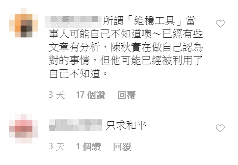再觸敏感神經 愛莉莎莎發聲力挺陳秋實「一點維穩的企圖都沒有」引火上身再掀論戰