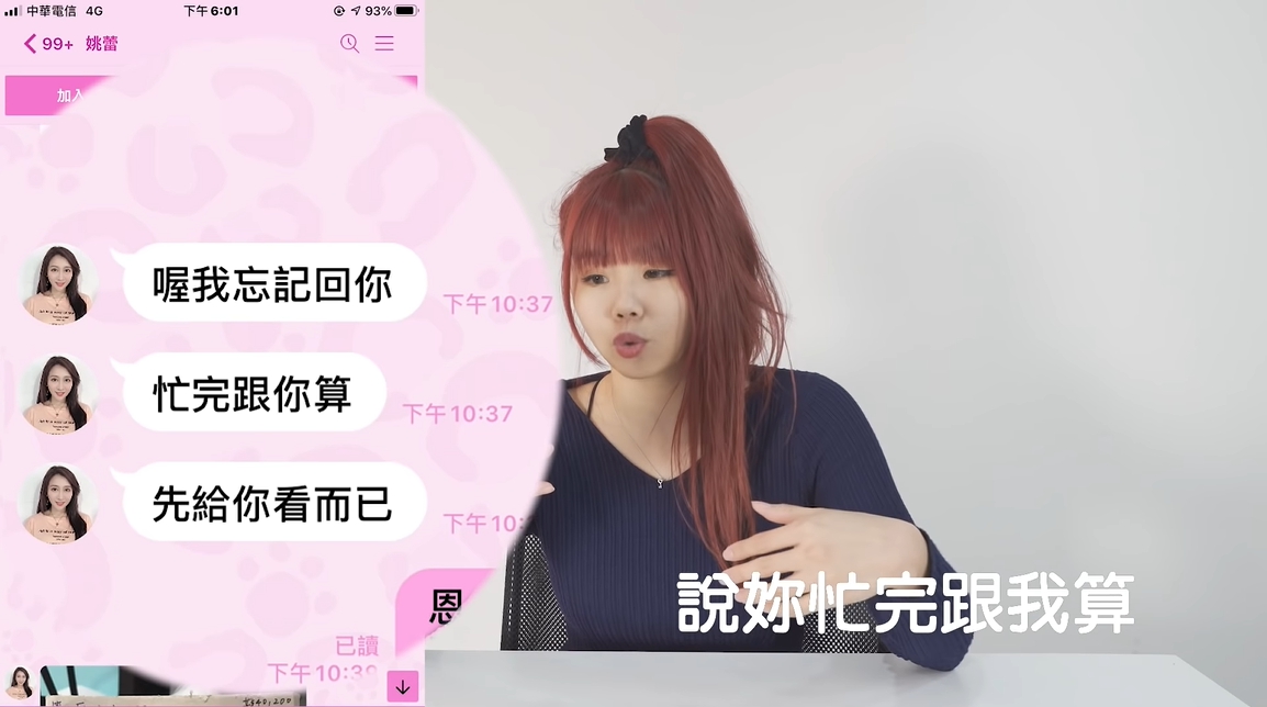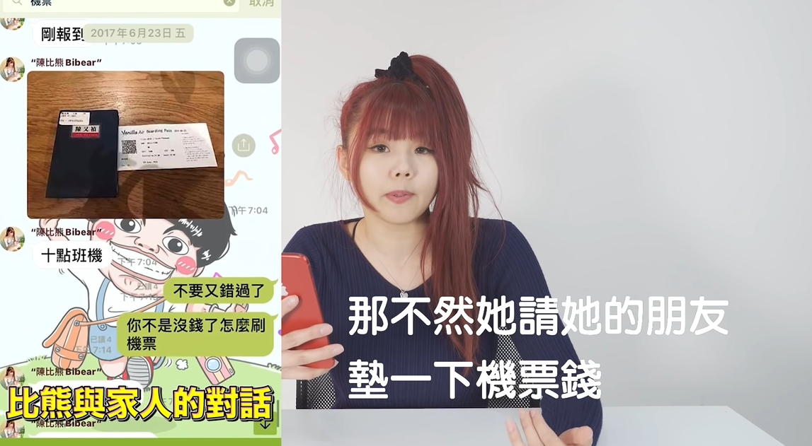 比熊在自己的頻道上傳新影片「誰潛規則?誰刷粉絲卡?到底是誰?你不說我說!!!」其中提到,自己其實並沒有多餘的錢出國,不過因為對方非常想去迪士尼,且願意先幫比熊代墊,因此比熊才答應這次的旅遊。不過準備出發時,對方卻睡過頭錯過班機,導致機票需要重訂,對方也提出請自己朋友先代墊機票錢的辦法,而比熊在影片之後,才得知原來所謂的朋友都是找粉絲來幫忙刷卡!拖款的部分,比熊也曬出對話紀錄,其中可以看到對方表示等忙完再和比熊算錢,比熊藉此證明自己沒有欠錢不還。