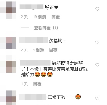 艾瑞絲深夜照片一出,立刻引來許多人按讚,同時紛紛留言表示,「胸部變好大XD」、「挖……辣到不行」、「漸漸的習慣愛莉絲有大ㄋㄟㄋㄟ」、「艾瑞絲身材變好了?好看」、「難得把戰服拿出來穿,這個腿、胸、腰身,可以可以!」不過這張照片,也有不少粉絲狂虧「塞很大」,認為艾瑞絲有一雙美腿就已經十分給力!