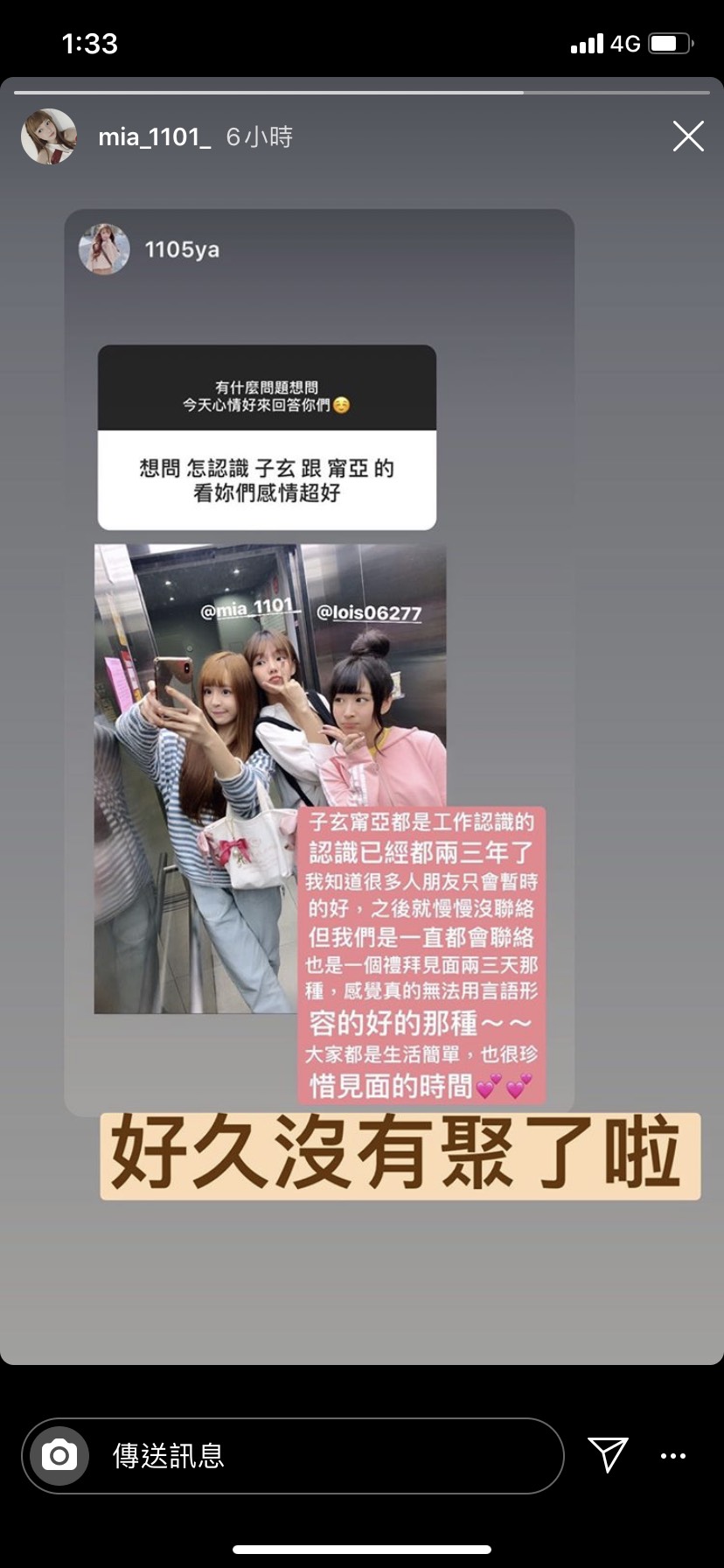 女星「元元」(吳婕安)從17直播平台在網路上走紅,甜美長相與姣好身材吸引無數粉絲關注,進而成為演藝圈通告藝人,人氣居高不下,除了積極發展演藝事業外,她也積極經營社群媒體,累績了不少粉絲追蹤,人氣逐漸高漲的她同時也會在粉絲團上與粉絲互動。日前,元元在IG限時動態上回應網友「怎麼結識閨蜜子玄與甯亞」的問題,她的回應展現了彼此之間的深厚情誼,引起閨蜜甯亞感嘆「好久沒有聚了啦」。
