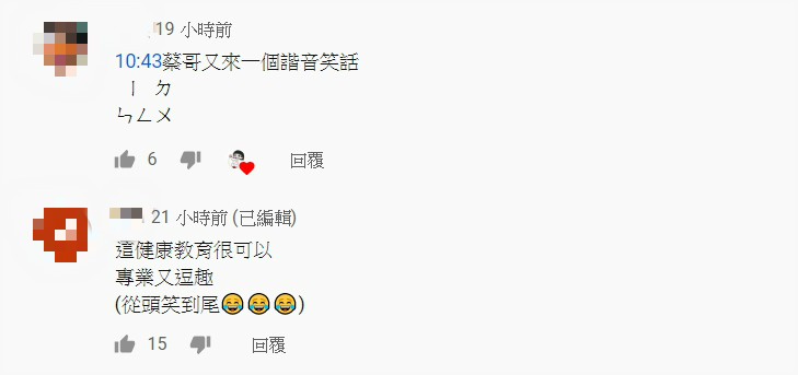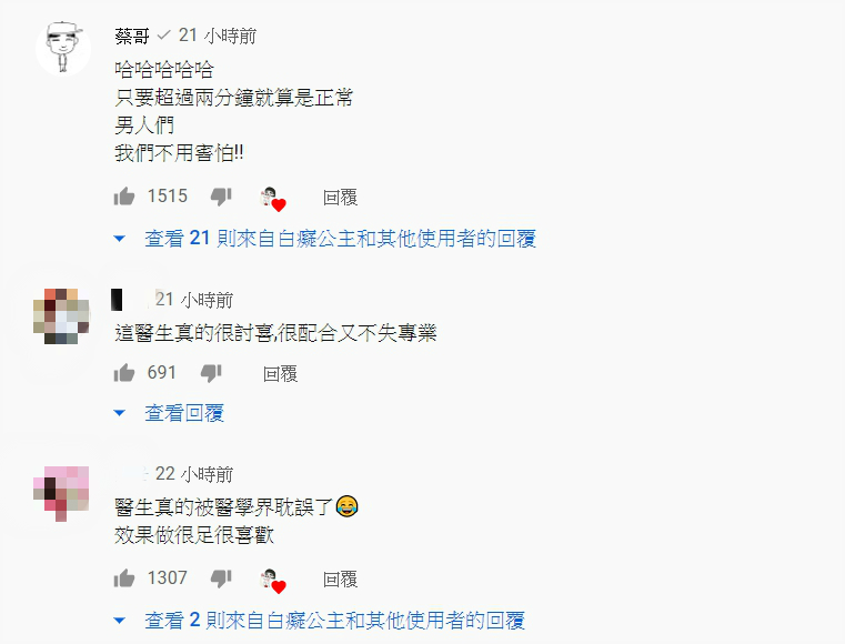 影片一出網友紛紛湧入影片底下留言「這健康教育很可以、專業又逗趣」、「還好我有超過2分鐘」、「知識總這樣不知不覺在歡笑中吸收了」,蔡哥還在底下親回「只要超過兩分鐘就算是正常,男人們我們不用害怕」,逗笑不少網友,還有網友針對三人在影片中的互動歪樓表示「這醫生真的很討喜,很配合又不失專業」、「醫生真的被醫學界耽誤了」