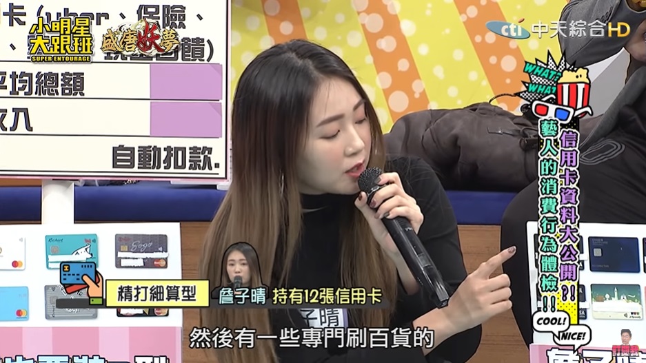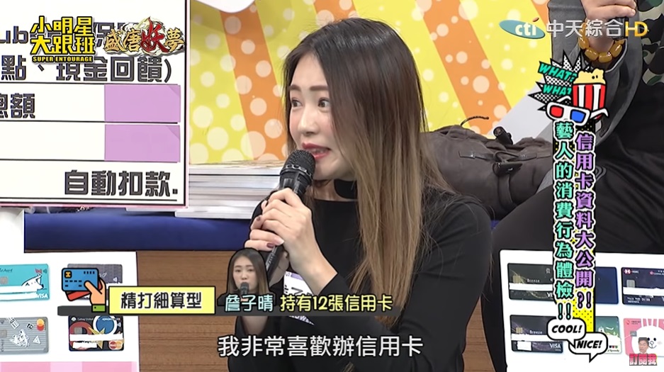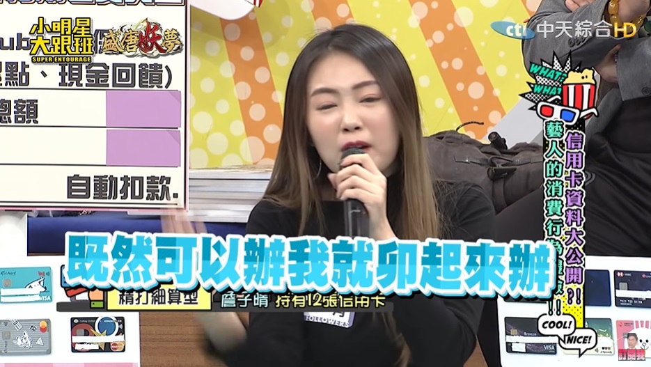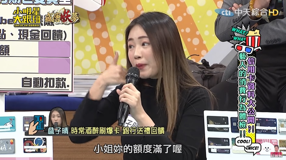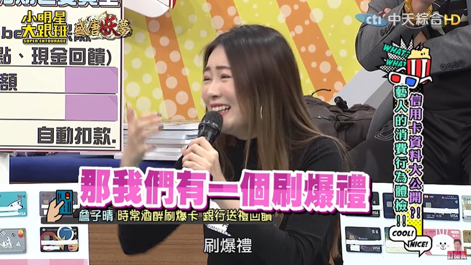 丫頭曾認真的算過,她的信用卡裡面,有一張的點數除了可以累積里程數升等之外,竟還可以換成4萬的新台幣,讓眾人聽完都驚訝不已,覺得丫頭真的是很精打細算!只是,丫頭雖然很會算,也還是會有不小心失控的時候,她透露,「我喝醉之後,很容易把卡刷爆!」沒想到銀行打電話來跟她說,「你額度滿囉!要幫你提高嗎?」結果她拒絕後,竟又聽到對方說「我們有一個刷爆禮哦!」