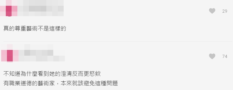 Dcard文章一出,立刻引起許多網友注意,紛紛留言表示,「真的有夠噁心,要參考都參考同一個人的,構圖素材都一樣,也太偷懶了吧?想要靠網路紅,就該好好想想自己做了些什麼事…」、「真的尊重藝術不是這樣的」、「不知道為什麼看到她的澄清反而更怒欸,有職業道德的藝術家,本來就該避免這種問題」、「之前很喜歡她,看到這些抄襲事件覺得好失望啊」、「最少最少要標上靈感來源,這是一種尊重,你不是說掛著藝術家創作的名號,就能把別人的作品當墊腳石」。