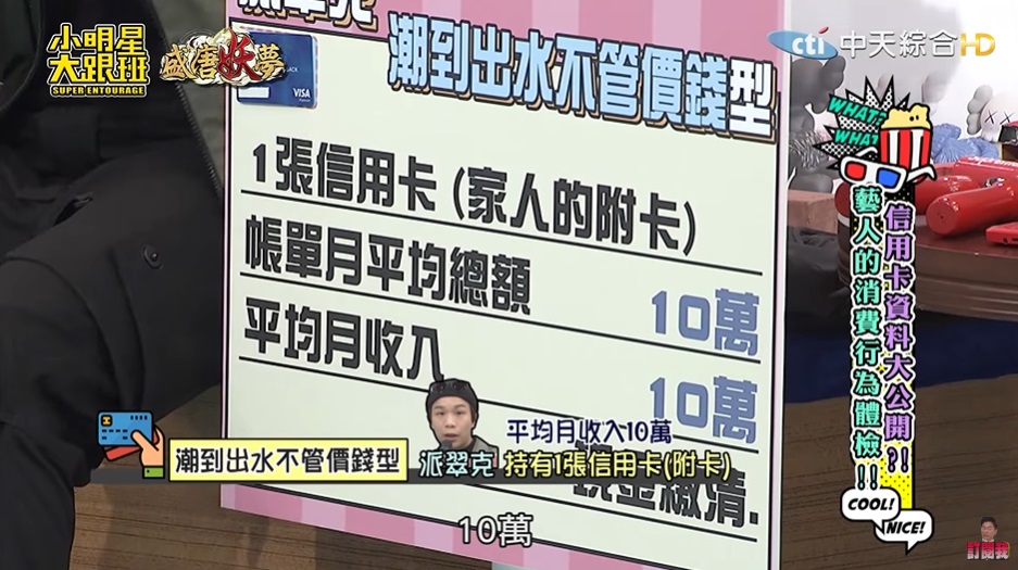 通常人們只要錢賺得夠多,花費相對也會變得比較多!最近《小明星大跟班》節目邀請了幾位藝人來分享自己的「消費行為」,並且由理財專家來進行消費體檢!其中,月入10萬的藝人派翠克,竟然一個月的消費金額也高達10萬元...根本就是月光族最佳代表!不過他則說自己是「投資型花費」,並拿出許多「戰利品」來展示,讓全場看完傻爆眼!