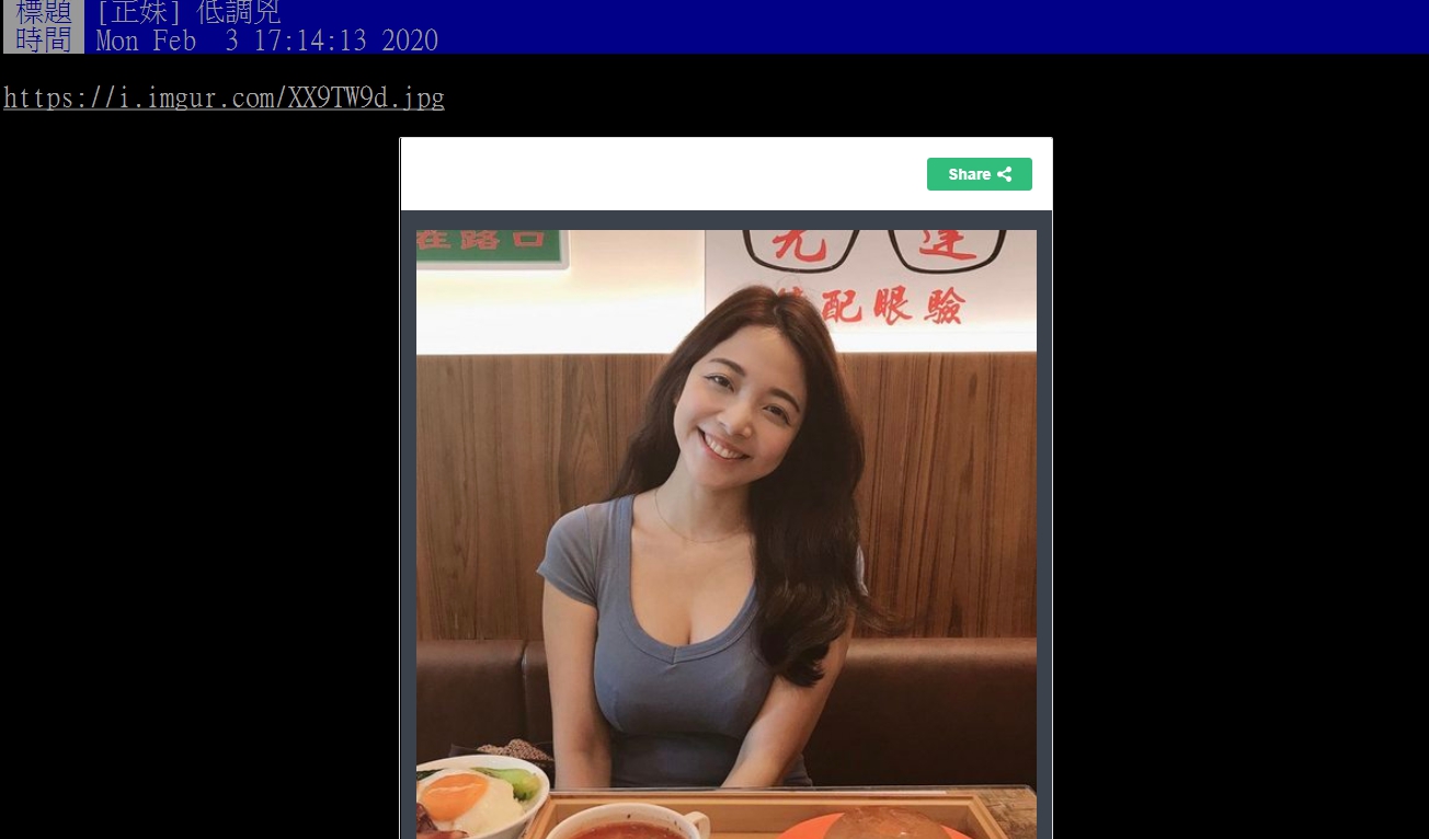 台灣知名網路論壇PTT,可說是台灣網路流行文化的源頭,其中「表特版」更是男性鄉民的集散地,版上鄉民們紛紛PO出心目中的女神,不管是清純可愛、清新秀麗,還是性感火辣的正妹都聚集在此!然而近日,一名「低調兇妹」的照片被PO出,瞬間在表特版引起爆卦討論!