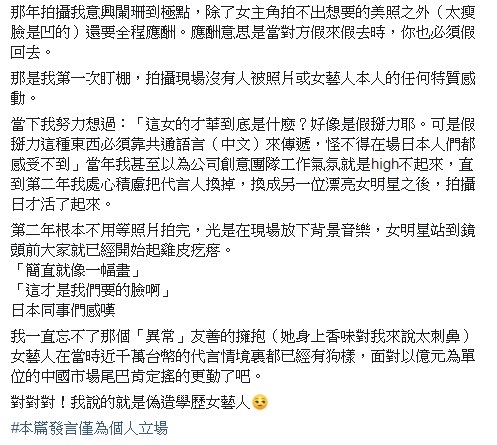 中古小姐還提到,「在面對千萬台幣酬勞時,人會變成狗,也不是不能理解!」並指出對方「假掰力十足!」不過她整篇貼文都沒有指出到底她在說的女星是誰,而是在最後留下一句「偽造學歷的女藝人」,引起了網友們的熱烈討論與關注!