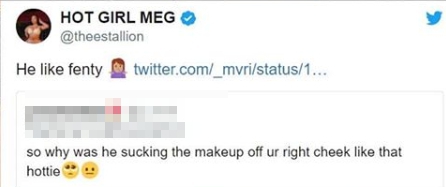 不過,梅根卻在個人的Twitter中發文,否認了戀情。不過由於兩人的舉動過於曖昧,還是有許多網友難以信服,紛紛提出質疑,有一名網友更疑惑提問:「那為什麼他狂吸妳的臉頰,幫妳卸妝?」,結果梅根居然表示:「他很喜歡Fenty。」表示當天自己使用的粉底液,是對方的愛牌,言論引起許多討論。