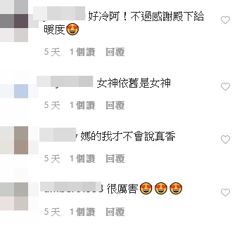 周荀照片一出,立刻引來許多粉絲按讚,同時也有人紛紛留言表示,「殿下身材超猛!」、「女神依舊是女神」、「這麼久不見,還以為都消失了呢,南半球」、「殿下的腰RRRR」、「果然晚睡是有福利的❤️」、「身材依然好」、「好香的南半球」、「久違的南半球殿下再現」。
