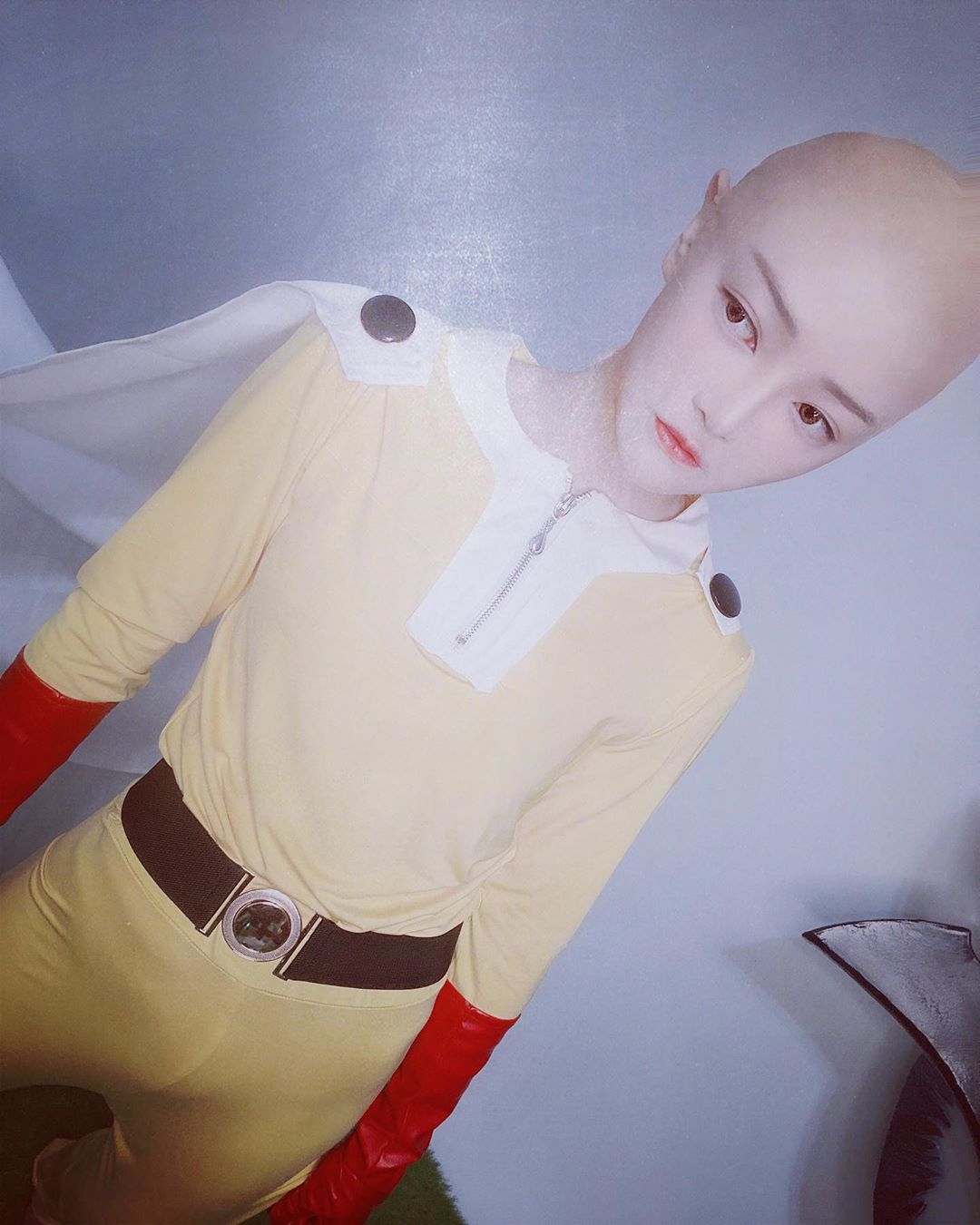 事實上,周荀前陣子靠著一張「光頭照」,瞬間嚇壞不少人,當時她因為工作扮成「一拳超人」的模樣,不但穿上該角色的衣服,連髮型也不馬虎,弄成一顆超級大光頭,雖然五官仍精緻漂亮,但光溜溜的頭頂依然讓網友嚇的不輕,不過周荀願意大膽嘗試新造型的態度,讓人不得不敬佩!