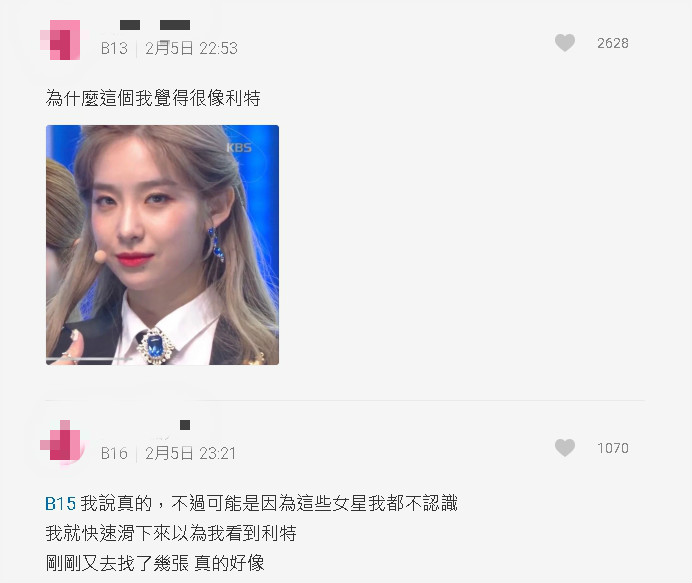 這時,有網友驚呼「為什麼這個我覺得很像利特」,並附上原PO貼的照片,發現Raon某個角度超神似Super Junior的隊長「利特」,再掀一波討論熱潮,網友留言表示這些女星他都不太熟悉,但聽見網友這麼一說立刻翻出幾張Raon不同的照片,「以為我看到利特……真的好像」、其他網友紛紛表示認同:「真的有夠像!越看越像回不去了」、「也太像特哥,我回不去啦」、「超好笑的我笑好久」、「眼神也很像欸笑死!」。